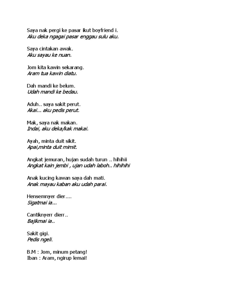 Cinta pengerindu bersulu. Iban sarawak makan makaitidur tinduksampai sangkailari berlandanasi asisayang sayaukekasih suluayah apaiibu indaisembunyi belalai bkn. Iban ayat dlm bahasa iban games on facebook. Aram tua kawin diatu.