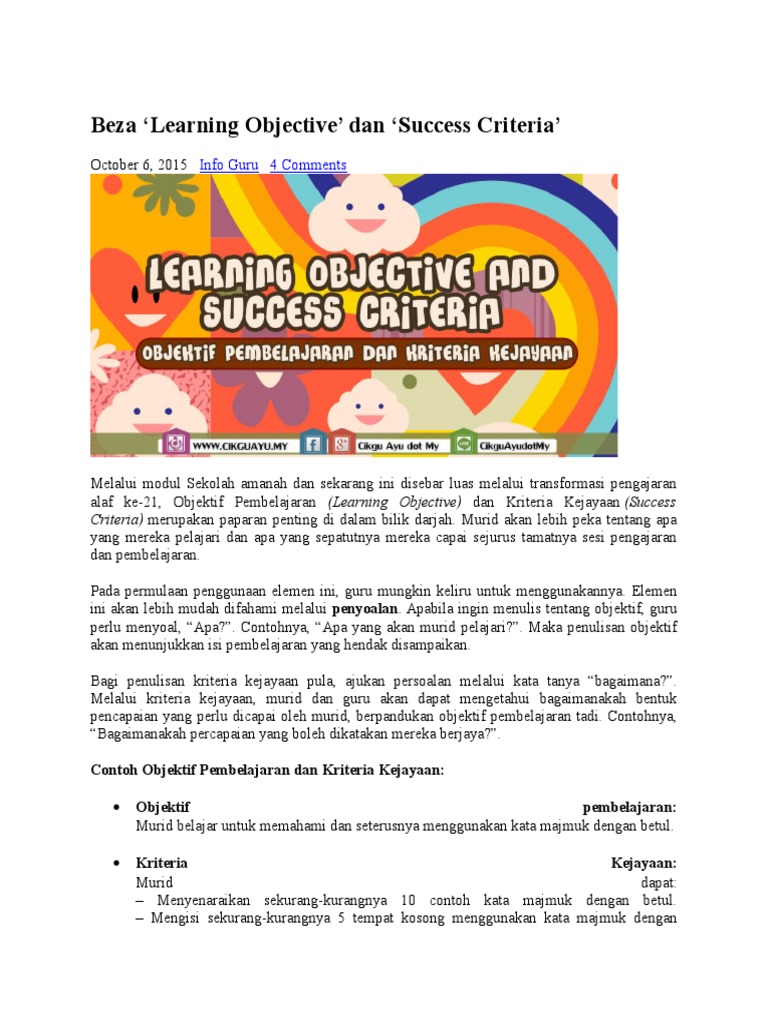 Objektif Pembelajaran Dan Kriteria Kejayaan Mudah Mengajar Teacher Hacks Teacher Dan