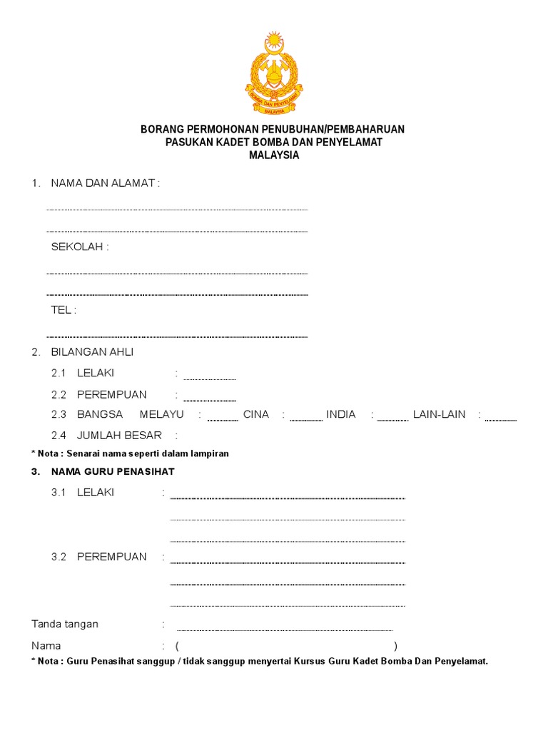 Borang Permohonan Sebagai Anggota Kadet
