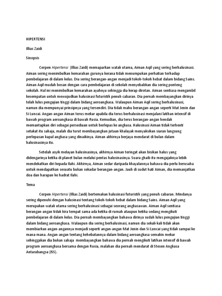 Persoalan Cerpen Hipertensi Tingkatan 5 Kecemasan A