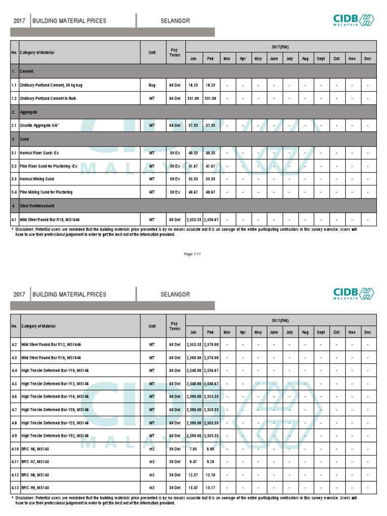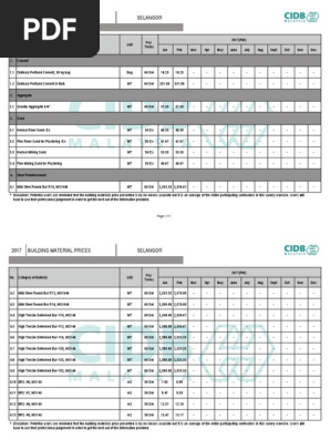 Cidb 2017 Material Cost 2017 Building Material Prices No Category Of Material 1 Selangor Unit Pay Terms 2017 Rm Jan Feb Mar Apr May June July Aug Sept Course Hero
