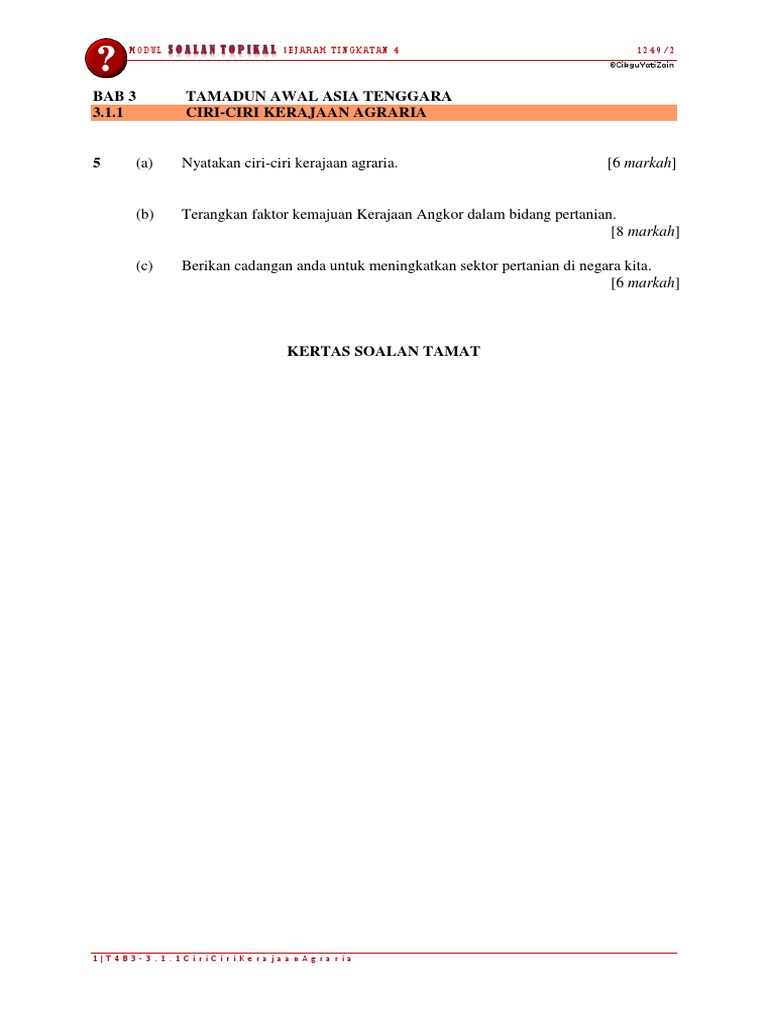T4b3 3 1 1 Ciri Ciri Kerajaan Agraria Esei Pdf