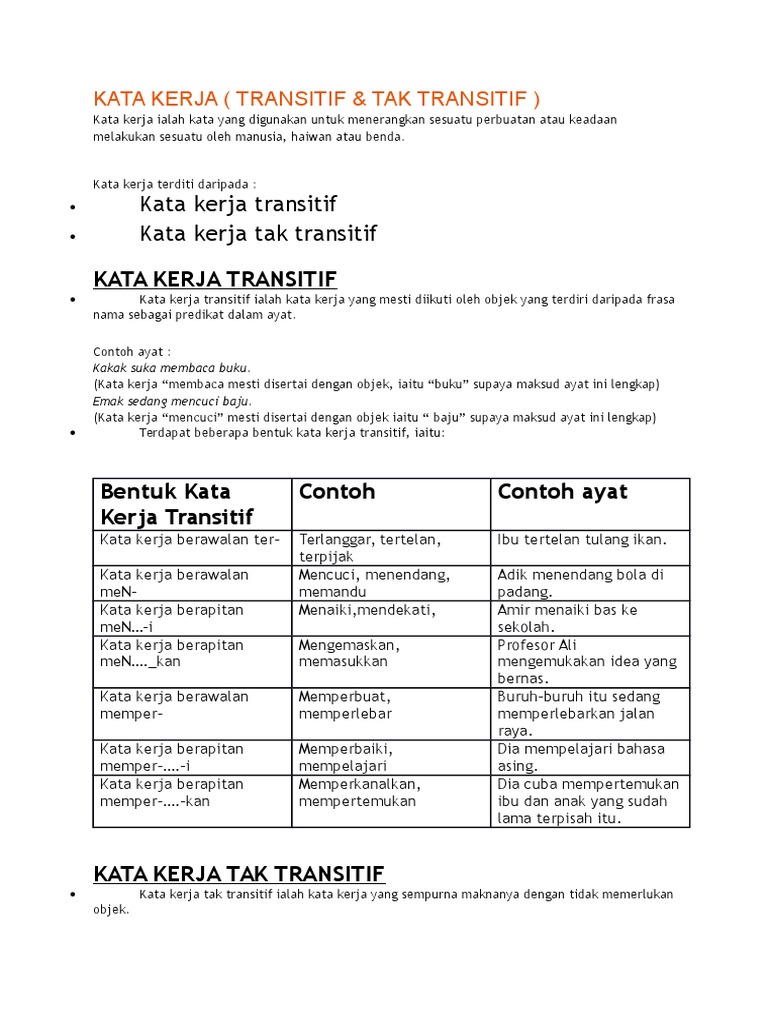 Kata Kerja Transitif Dan Kata Kerja Tak Transitif Pdf Document
