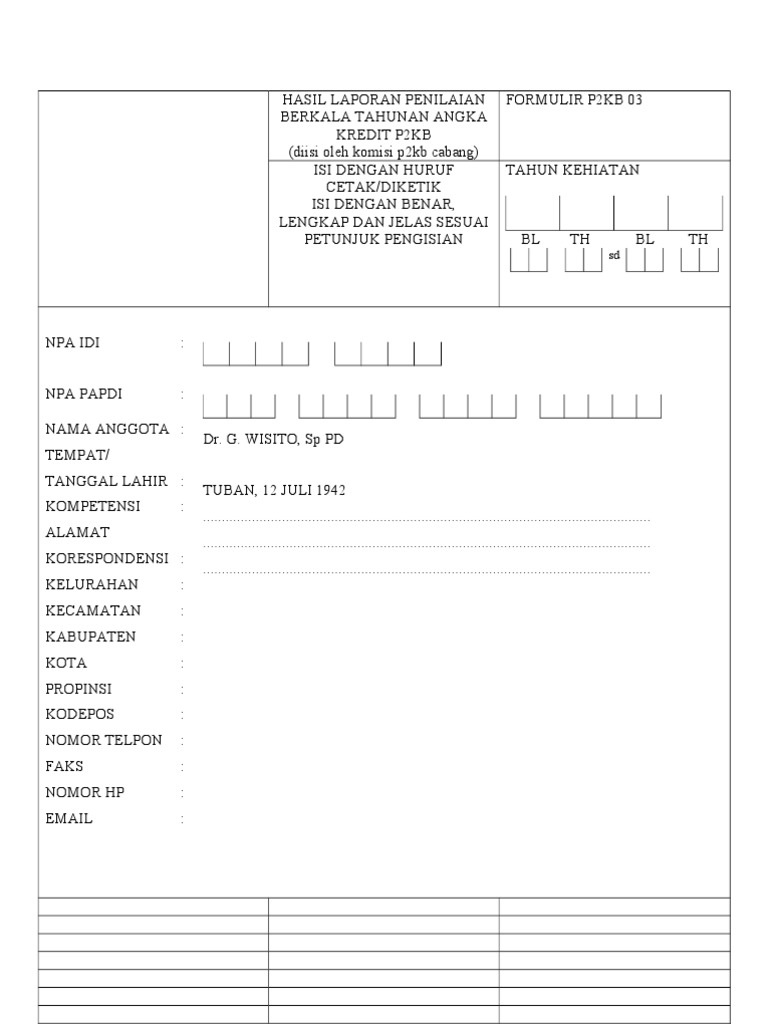 Borang Penilaian Kinerja Profesional Doc