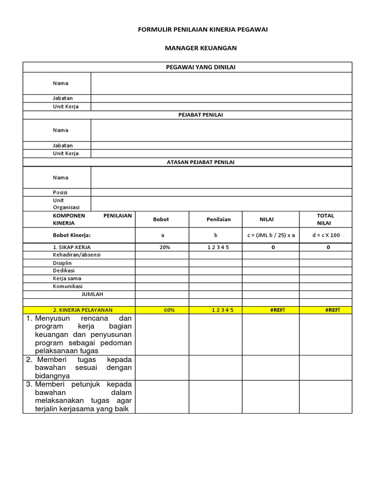Formulir Penilaian Kinerja Manajer Keuangan Docx