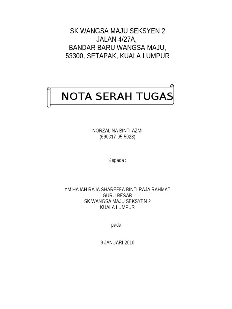 Doc Contoh Nota Serah Tugas Wkj 238 Academia Edu