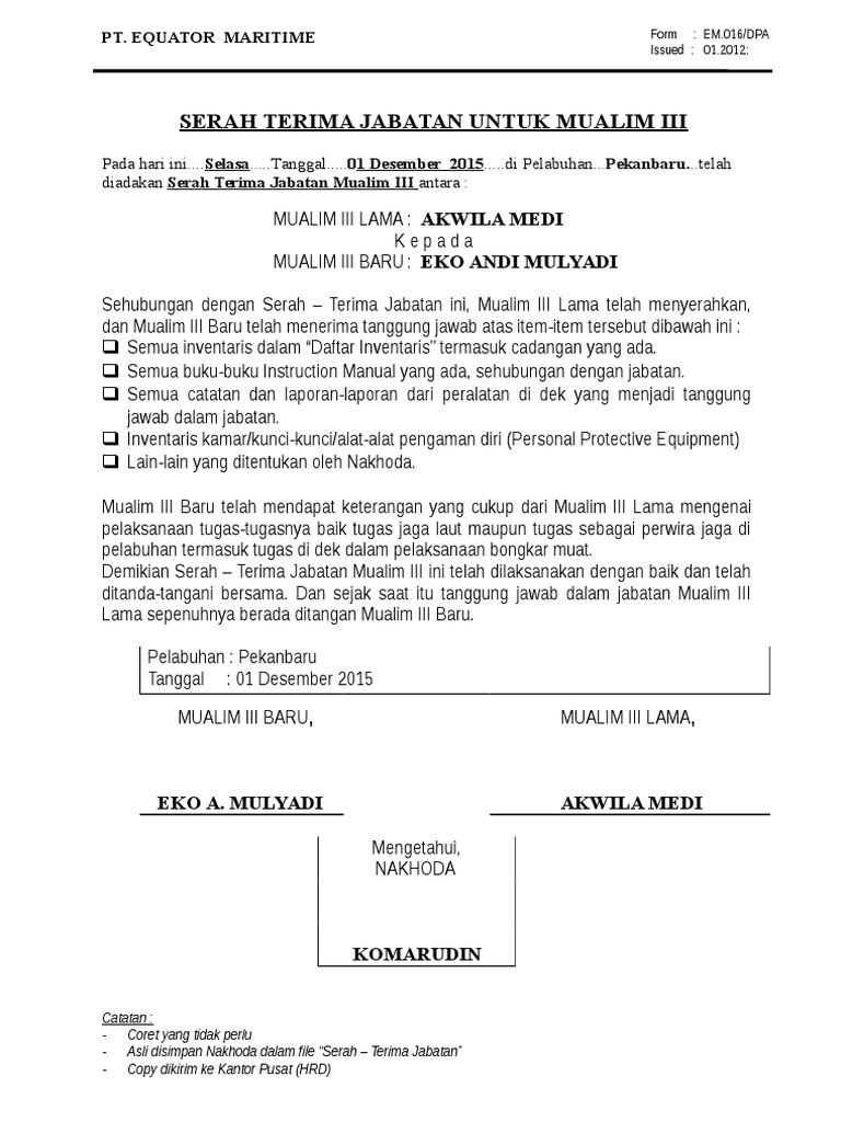 Serah Terima Jabatan Untuk Mualim Iii Docx