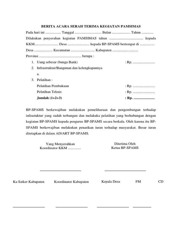 Berita Acara Serah Terima Kegiatan Pamsimas