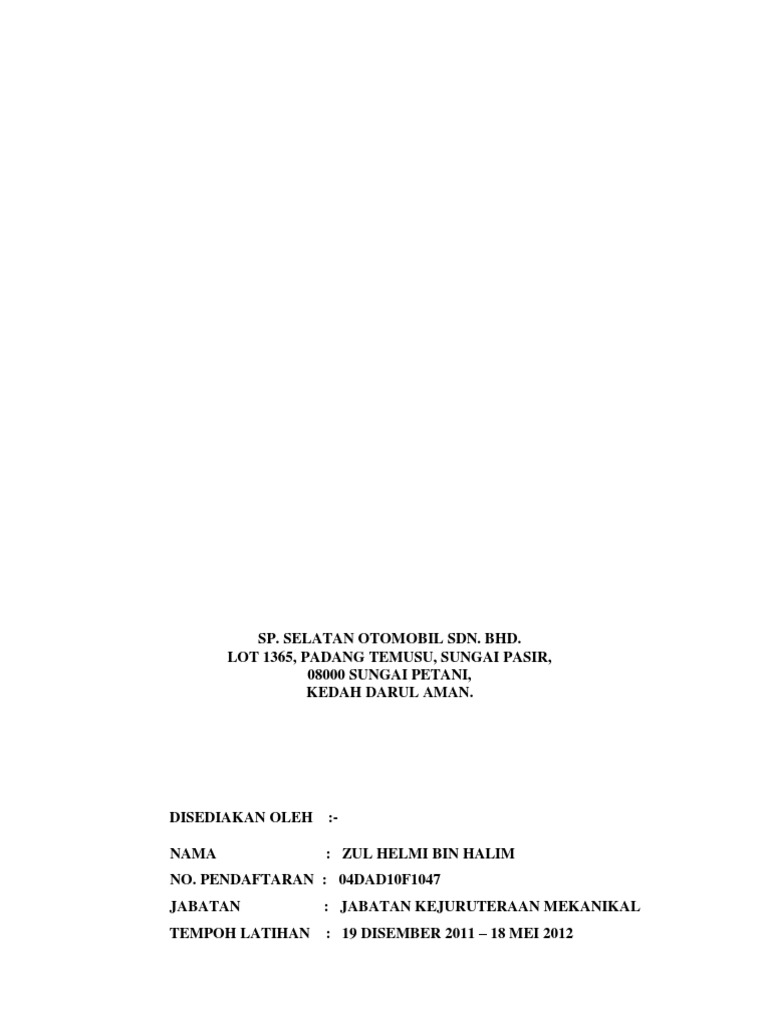 Pdf Contoh Laporan Industri Politeknik Muhd Safwan Academia Edu