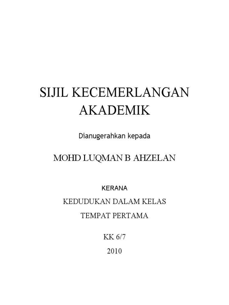 Sijil Kecemerlangan Akademik Majlis Eulogi Gemilang Akademik Mega Ke 12 2018