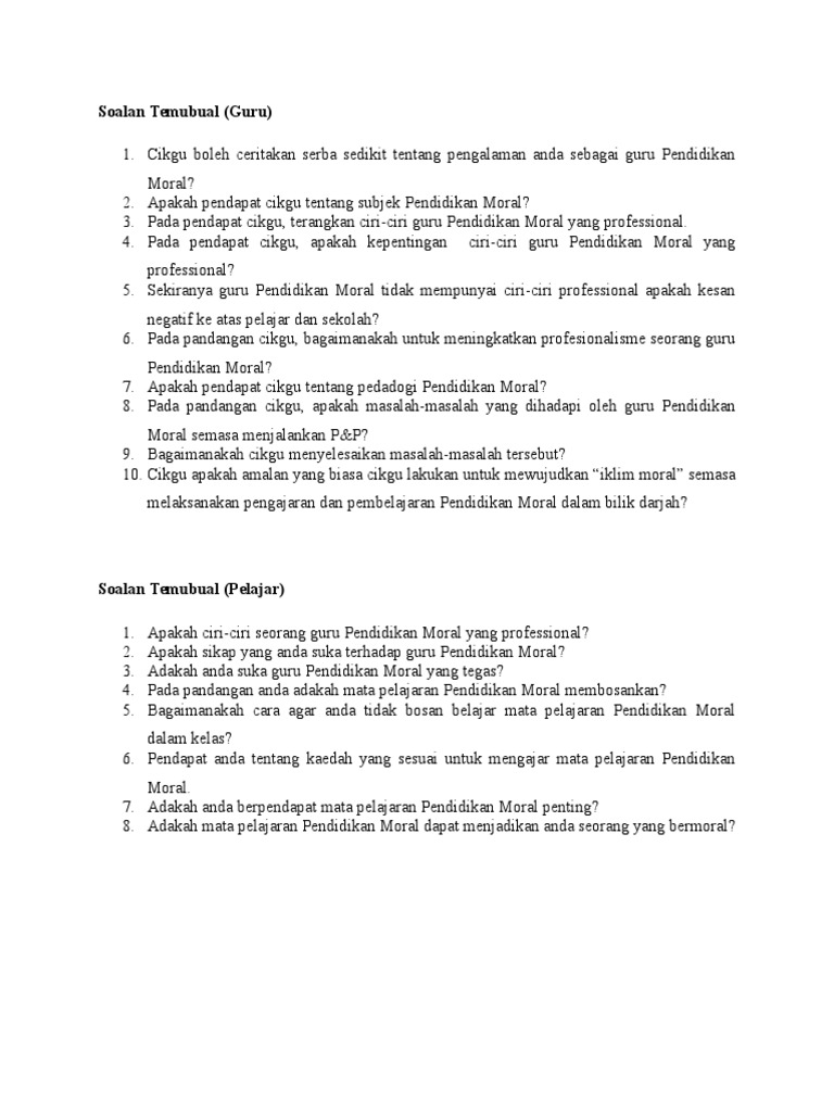 Contoh Soalan Temubual Dengan Guru Besar Soalan Ab