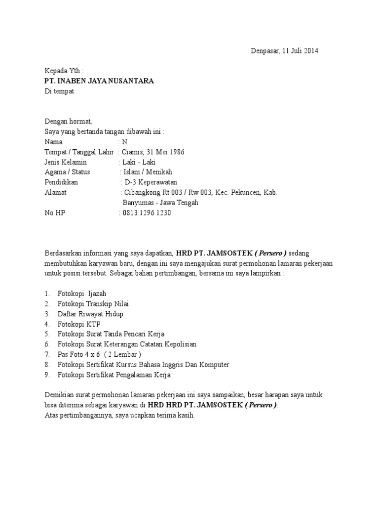 Download 25 Contoh Surat Lamaran Kerja Yang Benar