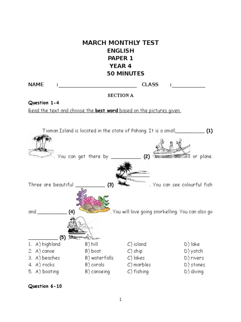 You are on page 1 of 10. Soalan english year 4 paper 2 english bi bahasa inggeris tahun 4 paper 2. Panitia bahasainggeris unit kurikulum sk longsait baram sarawak paper 1 1 hour questions 1 9 choose the best word to complete the sentences pilih perkataan yang terbaik untuk melengkapkan ayat berikut 1 my gave me some homework 6 i need a and some nails to repair the window. English paper 2 year 3.