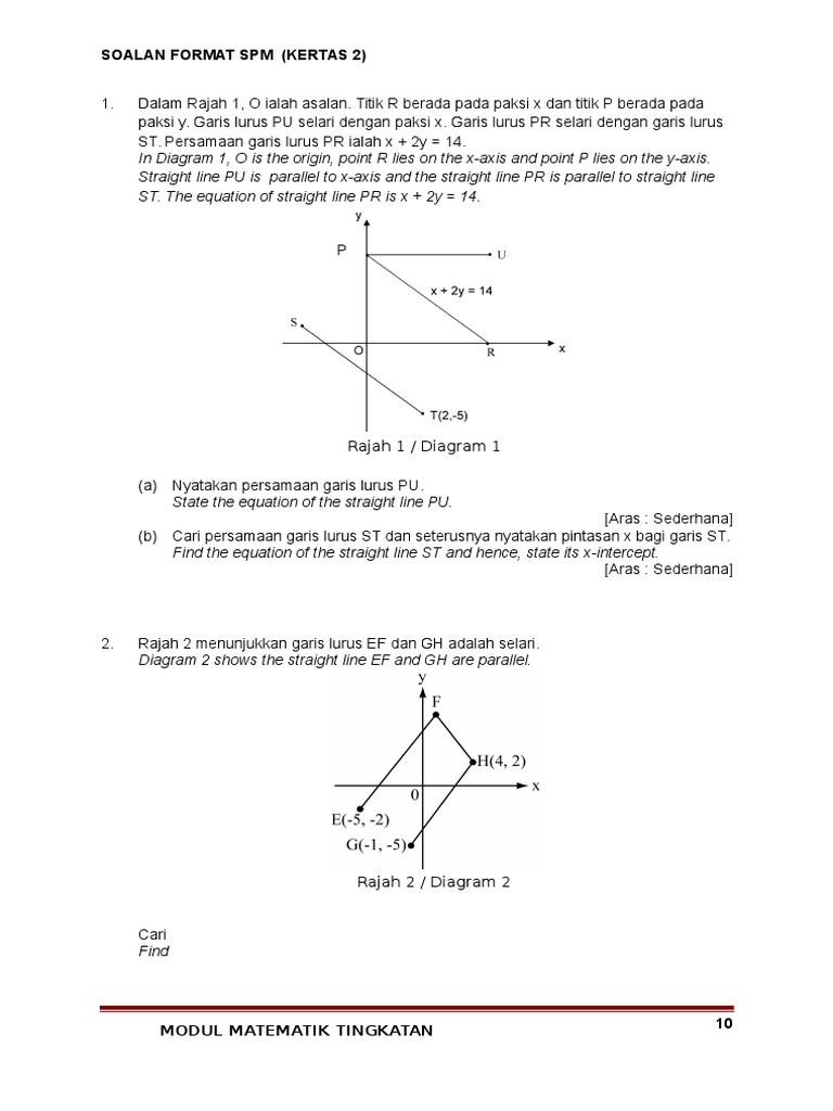 Nota Ulangkaji Spm Matematik Tingkatan 4 Tingkatan 5 5 7 Garis Lurus Spm Praktis Soalan Panjang