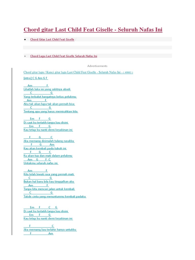 Chord Lirik Last Child Ft Giselle Seluruh Nafas Ini Youtube