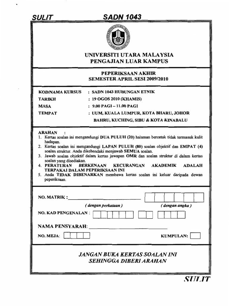 315219334 Contoh Soalan Hubungan Etnik Dan Jawapan Mpu 3113 Hubungan Etnik Peperiksaan Akhir Semester Bahagian A Soalan Objektif 40 Markah Arahan Course Hero