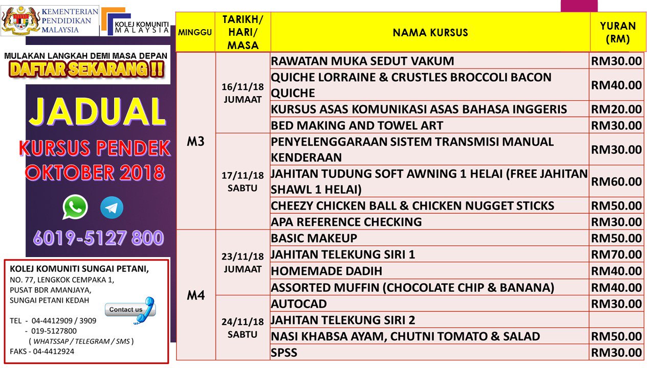Jadual Kursus Pendek Kolej Komuniti Kolej Komuniti Jerai Facebook