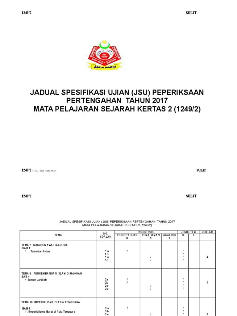 Jadual Spesifikasi Ujian 3m 2017 Pat