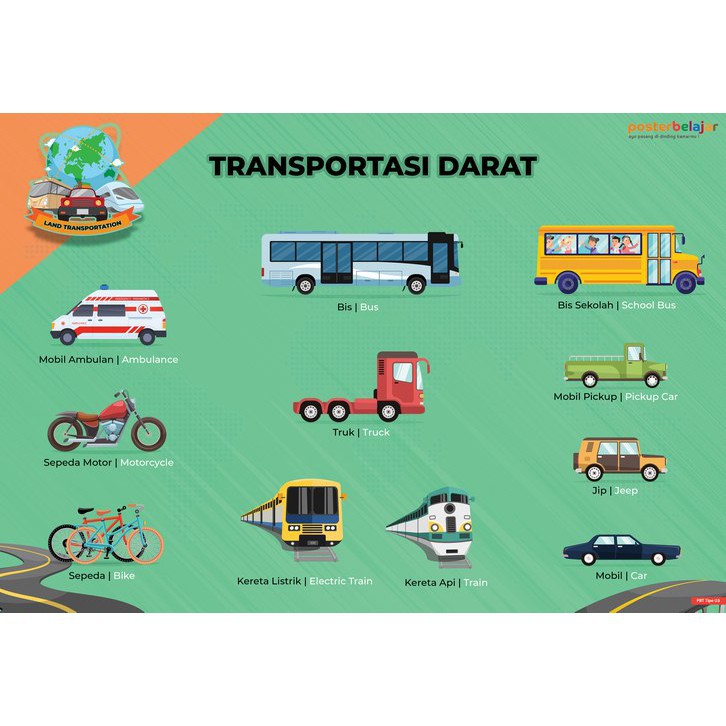 Posbel Poster Belajar Alat Transportasi Tipe 03 Anak Poster Pendidikan Transportasi Darat Mainan Shopee Indonesia