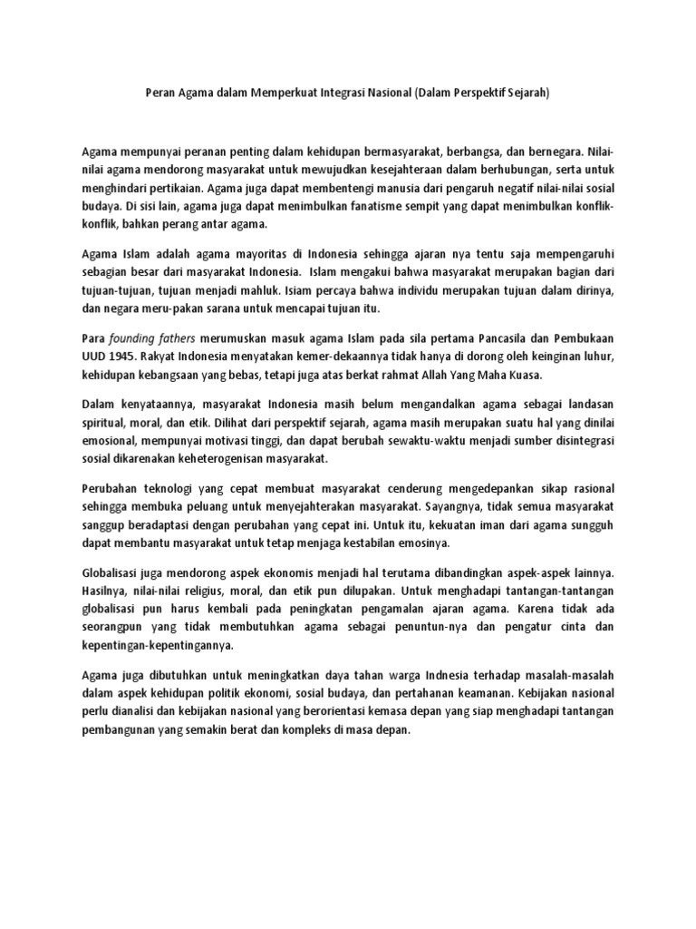 Peran Agama Dalam Memperkuat Integrasi Nasional