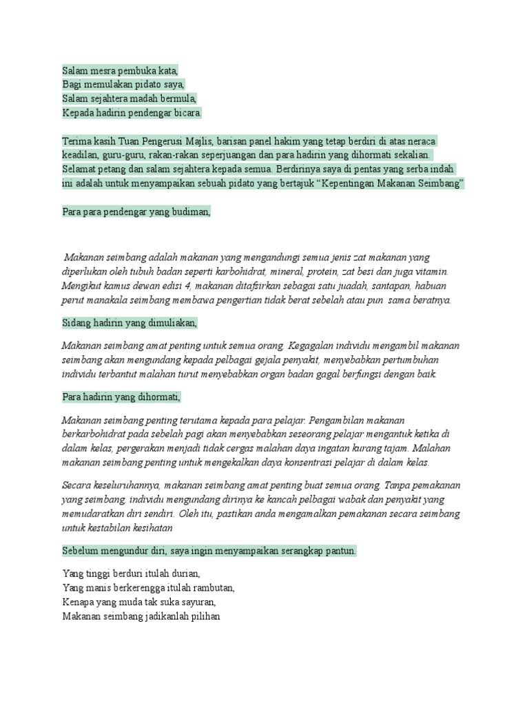 Teks Pidato Makanan Seimbang Docx