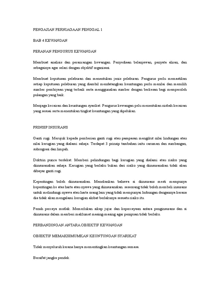 Bab 4 Kewangan Pengajian Perniagaan Doc