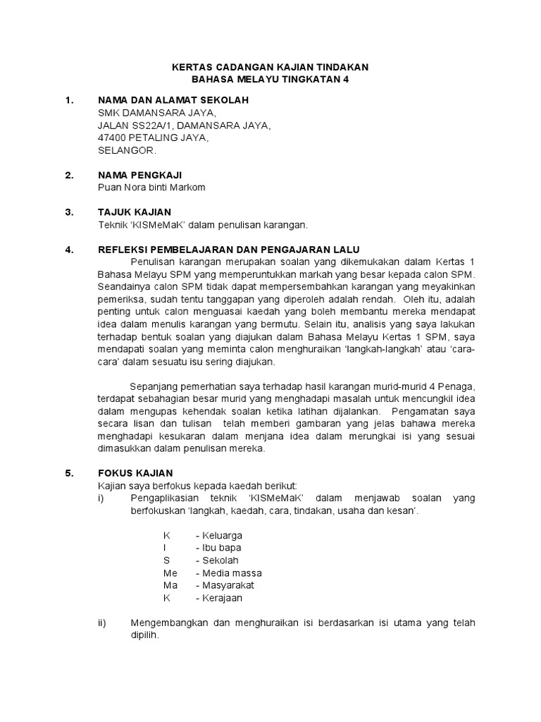 Kertas Cadangan Kajian Tindakan Bm Spm