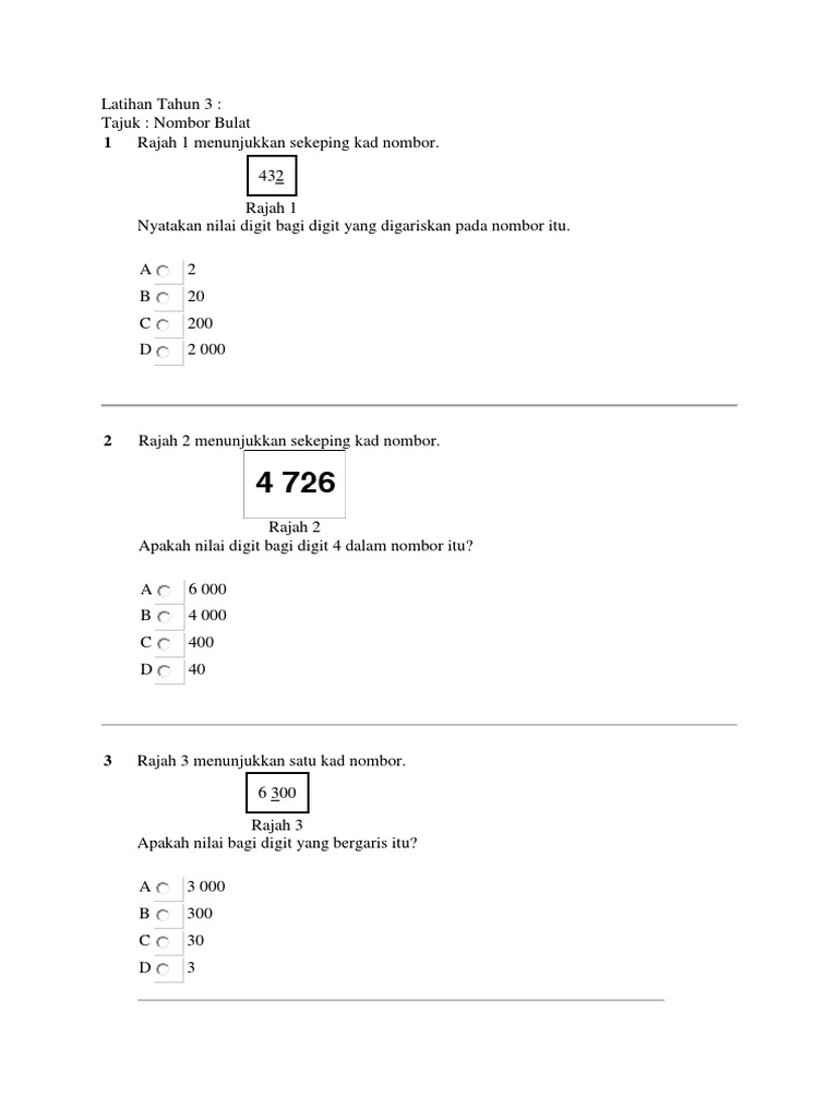Soalan Matematik Tahun 3 Unit 1 Helowina