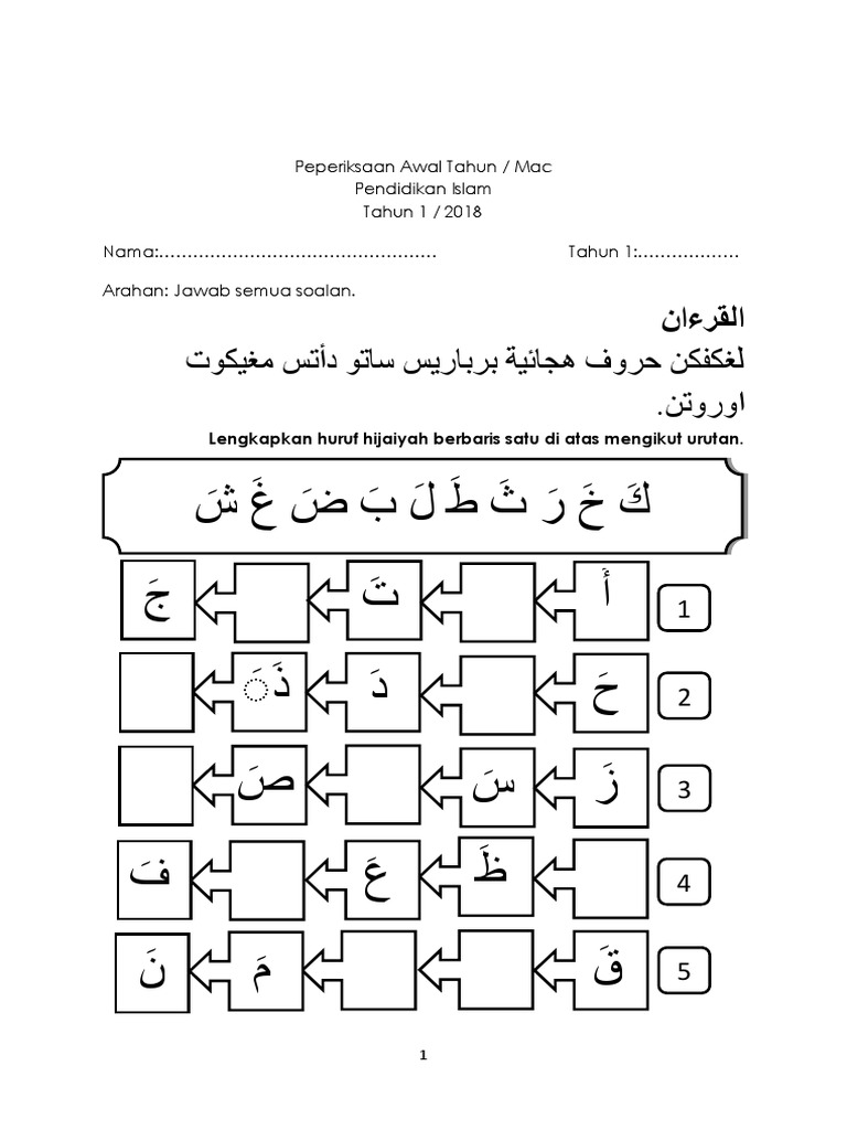 Pdf Soalan Jawi Tahun 1 6 Bulan Pertama Suraya Hassan Academia Edu