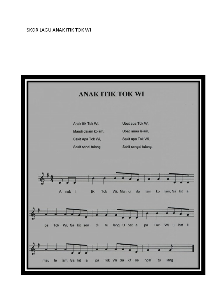 Skor Lagu Anak Itik Tok Wi