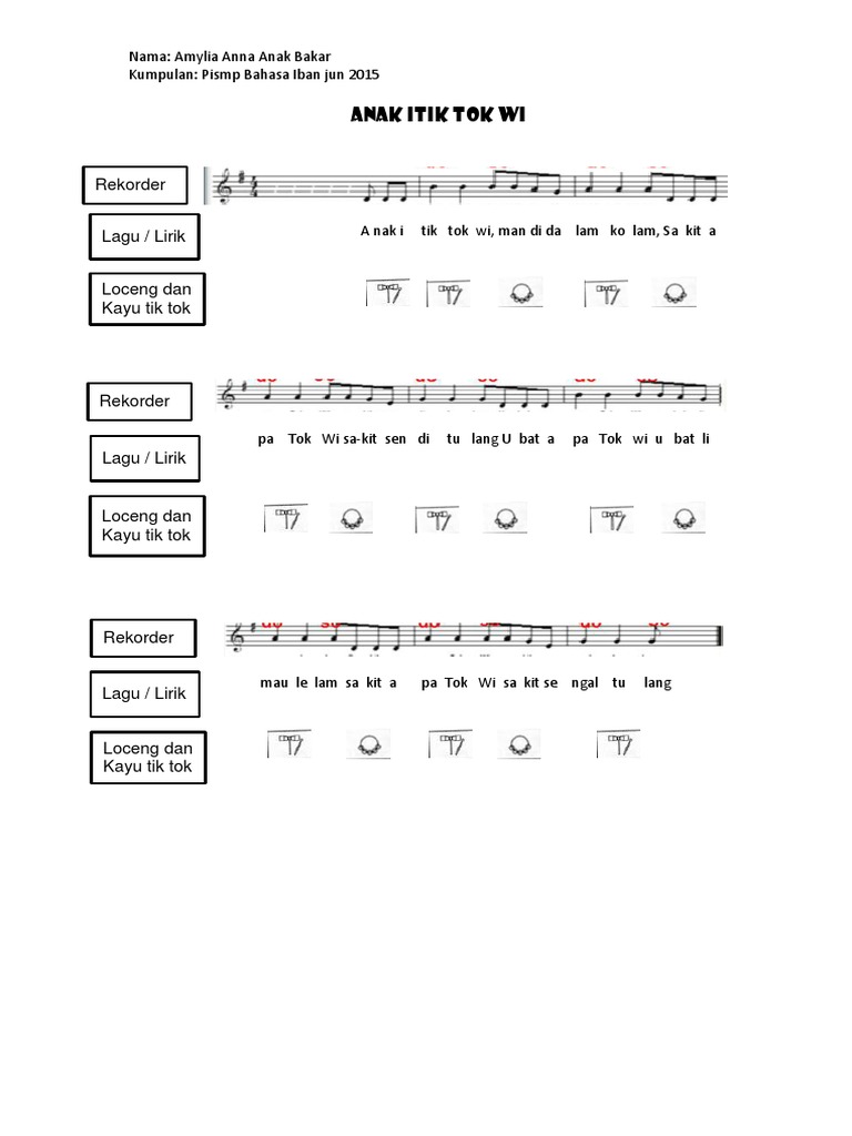 Lirik Lagu Anak Itik Tok Wi Pdf Document