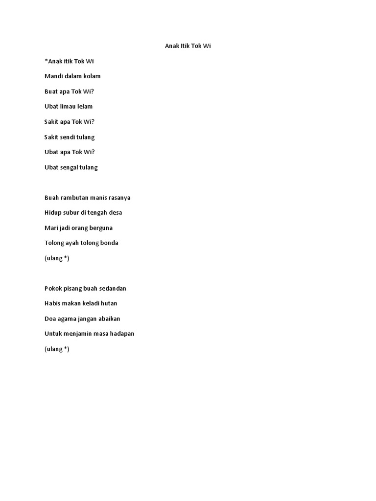 Senikata Lagu Anak Itik Tok Wi Docx
