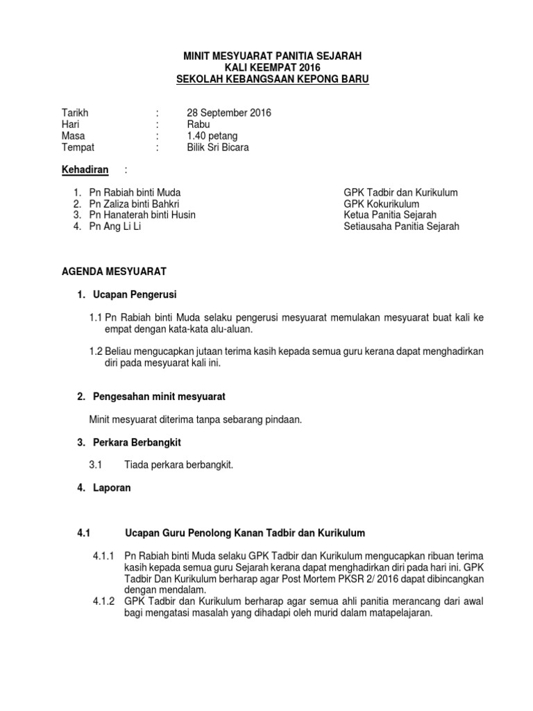 Minit Mesyuarat Mesyuarat Kokurikulum Kali Ke 4 Tahun Pdf Download Gratis