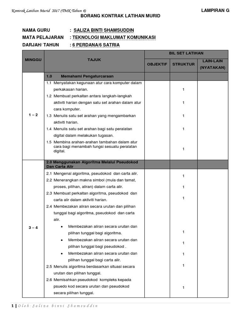Kontrak Latihan Murid Tmk Tahun 6 2017
