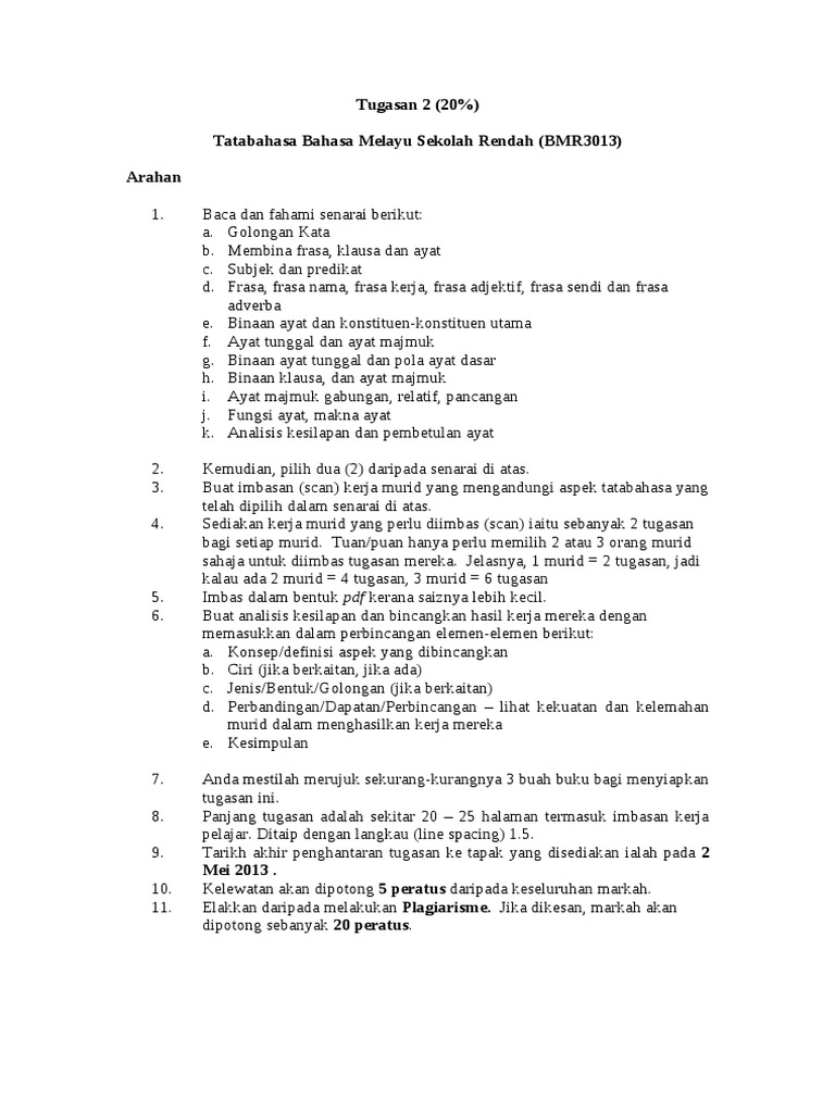 Tugasan 2 20 Tatabahasa Bahasa Melayu Sekolah Rendah Bmr3013 Arahan