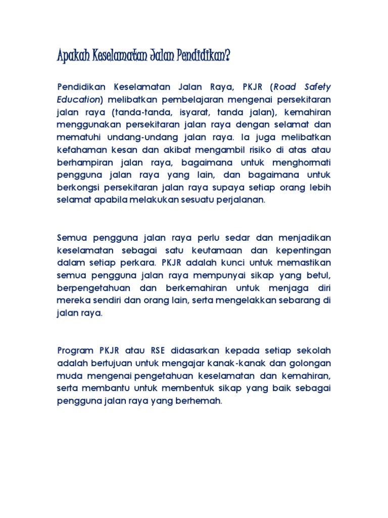 Apakah Keselamatan Jalan Pendidikan