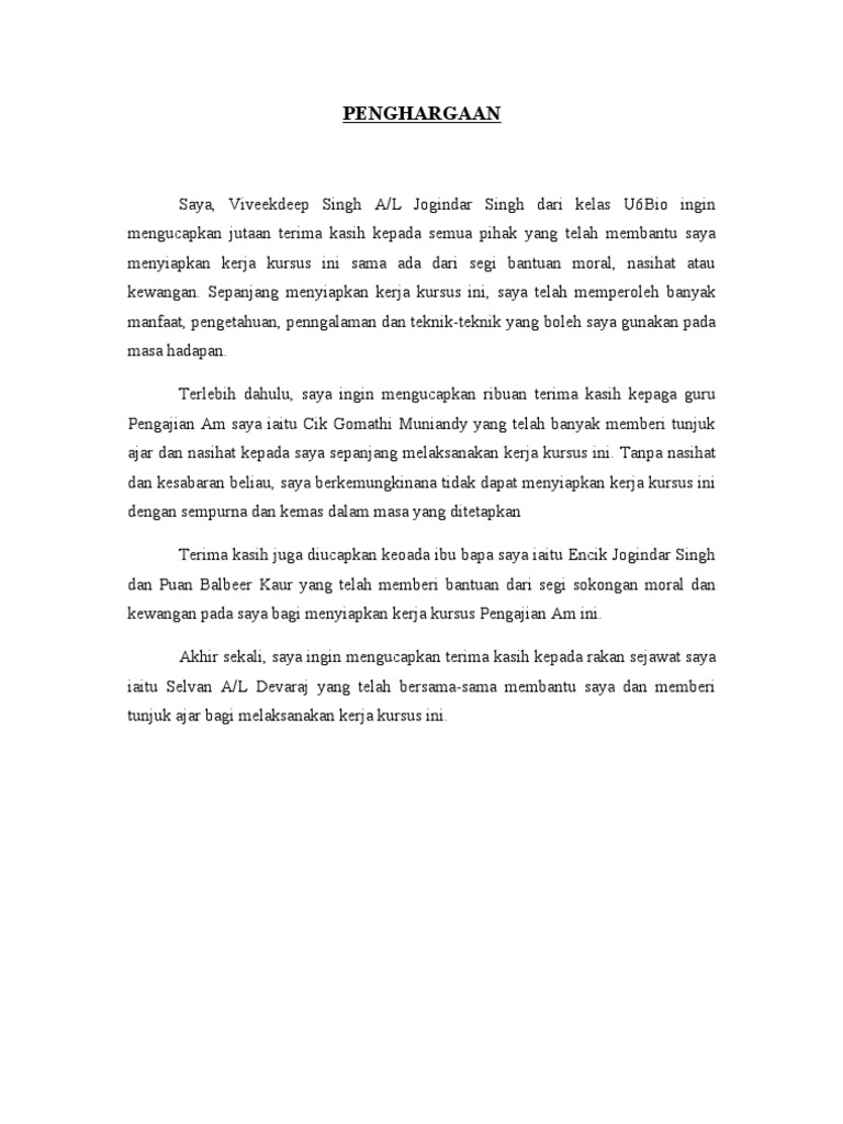 Contoh Penghargaan Untuk Kerja Kursus Scribd Contoh Kerja Cute766
