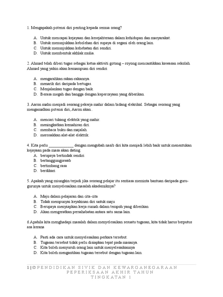 Peperiksaan Akhir Tahun Pendidikan Sivik Tingkatan 1