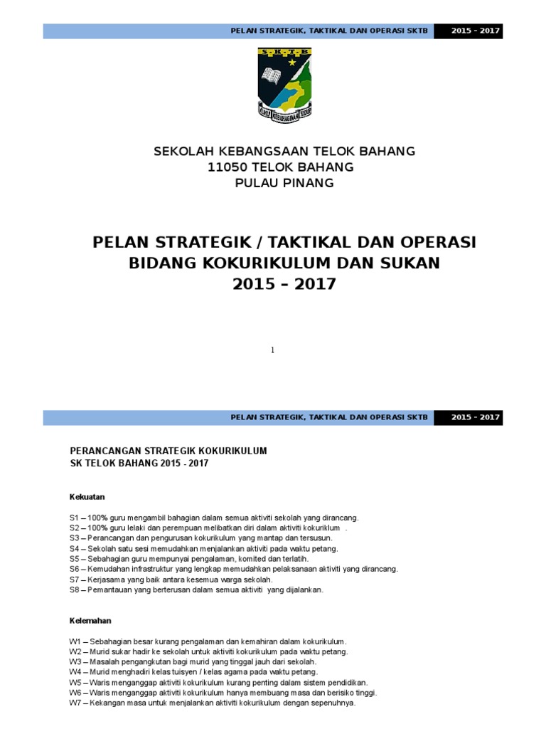 344084162 Pelan Strategik Kokurikulum 2017 Terkini Docx