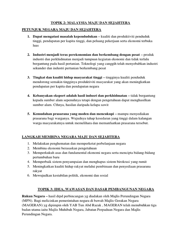 Dasar Pembangunan Negara Malaysia Sepintas Lalu