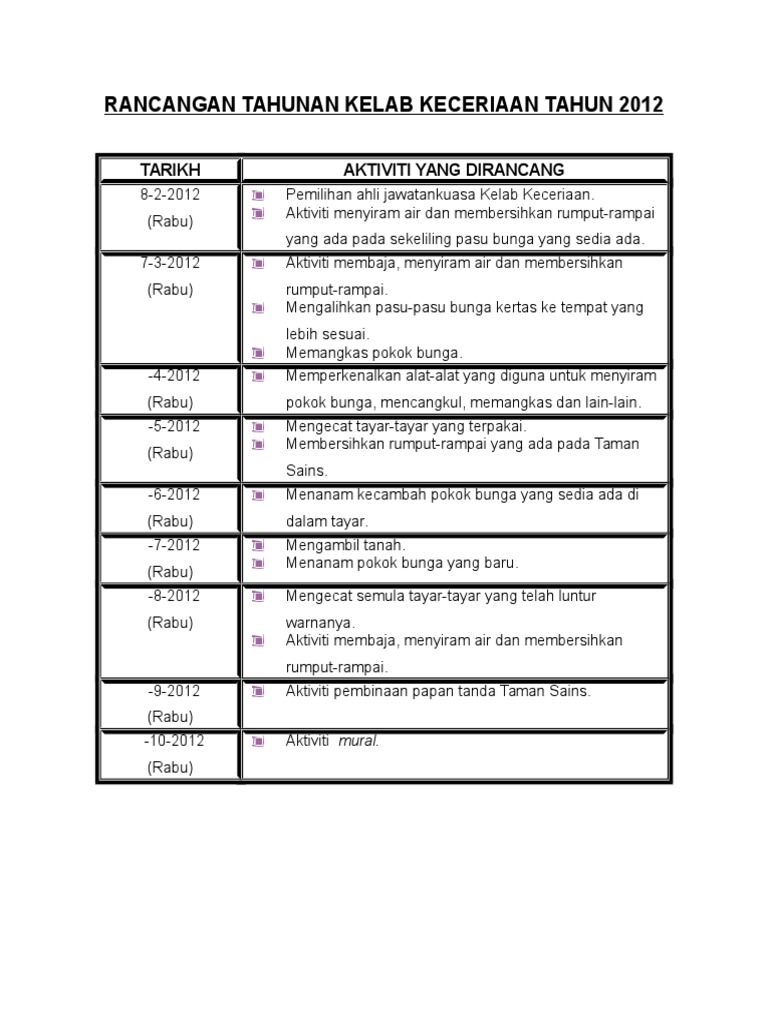 Rancangan Tahunan Kelab Keceriaan Tahun 2012