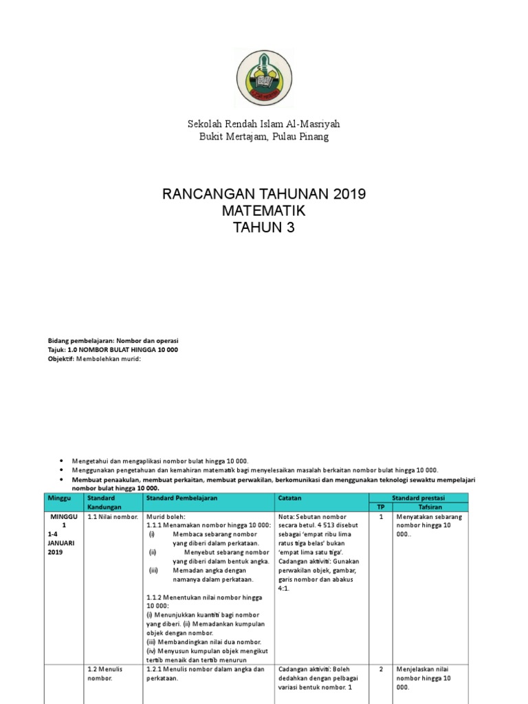 Rpt Matematik Tahun 3 Sumber Pendidikan