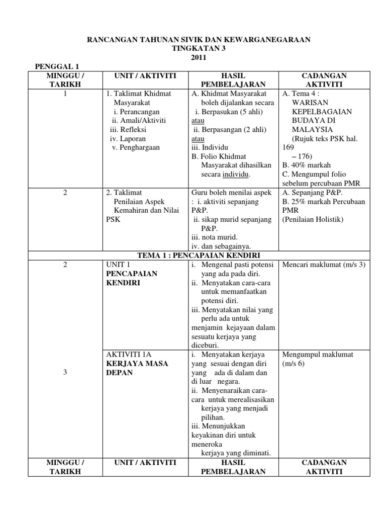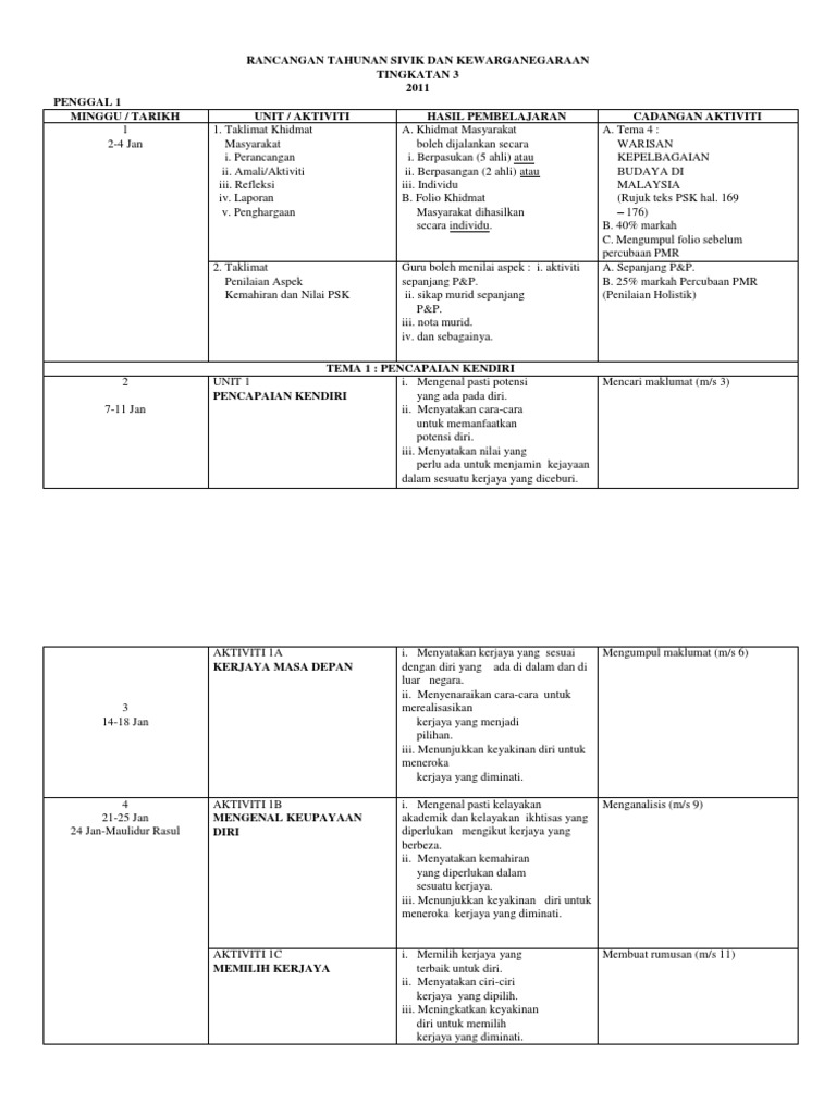 Rancangan Tahunan Pendidikan Sivik Dan Rancangan Tahunan Pendidikan Sivik Dan Kewarganegaraan Tingkatan Pdf Document