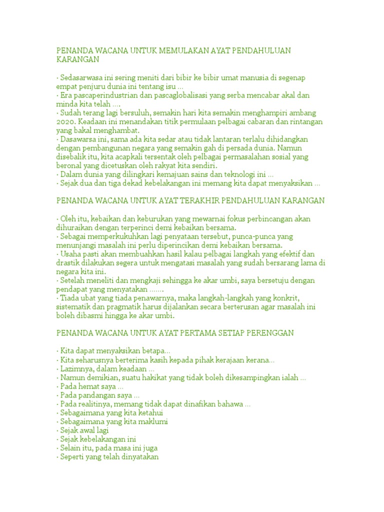 Penanda Wacana Untuk Memulakan Ayat Pendahuluan Karangan Sedasarwasa Ini Sering Meniti Dari Bibir E Bibir