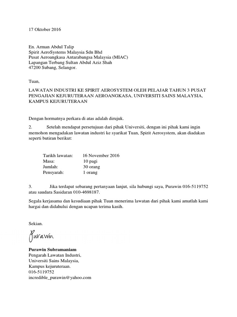 Surat Rasmi Kepada Kementerian Pelajaran Malaysia Kebaya Mude