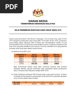 Siaran Media Kementerian Kewangan Malaysia Nilai Pemberian Bantuan Sara Hidup Bsh 2019