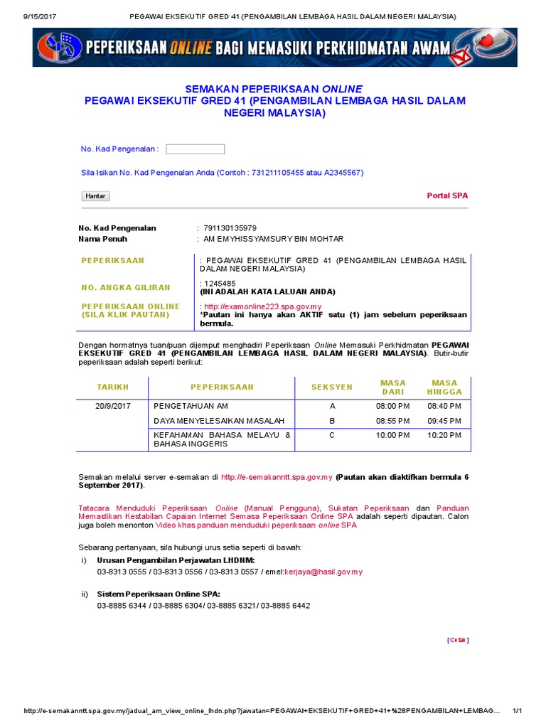 Semakan Spa Keputusan Peperiksaan Dan Temuduga Permohonan My