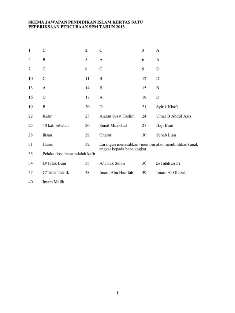 Trial Negeri Sembilan Pendidikan Islam Pra Spm 2013 Set 1 Skema K1 K2