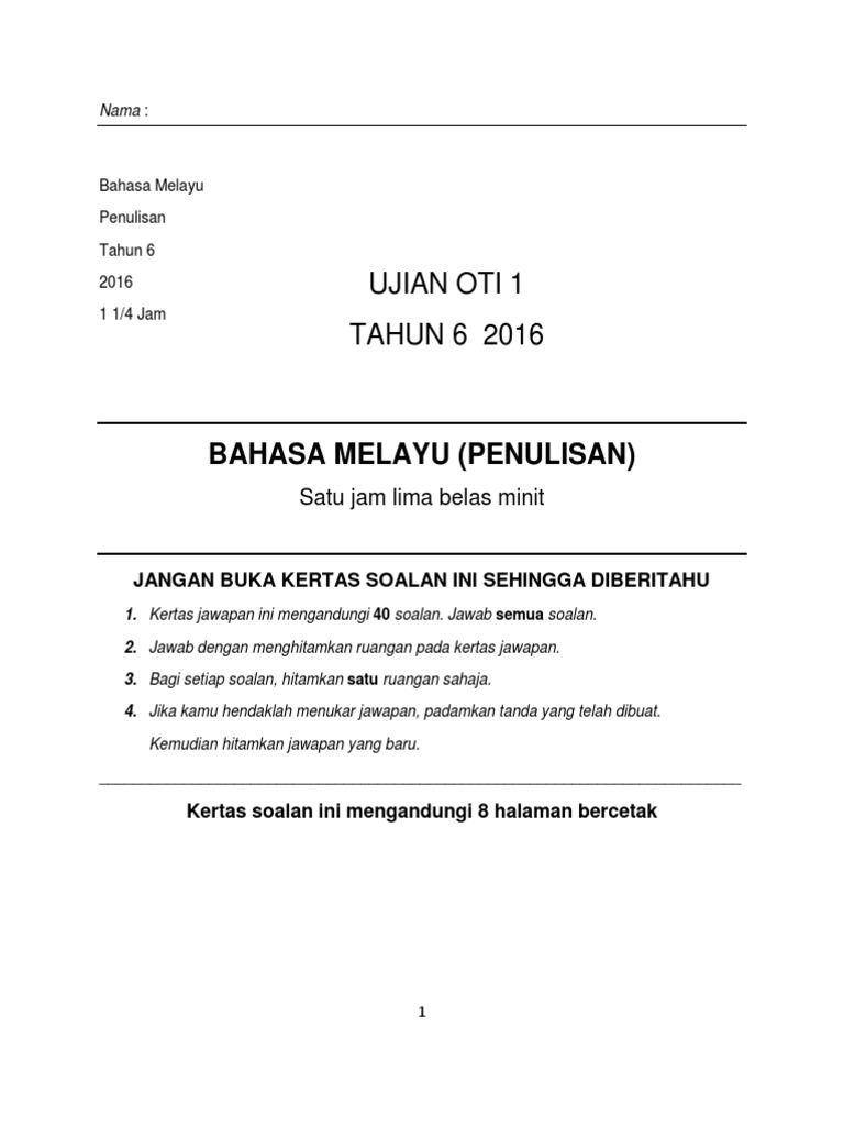 Bahasa Melayu Tahun 6 Ujian 1 Bulan Mac 2017