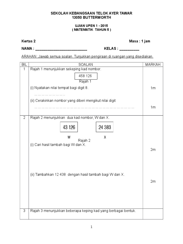 Matematik Tahun 5 K2 2016 Upen1 Sk Telok Ayer Tawar 2